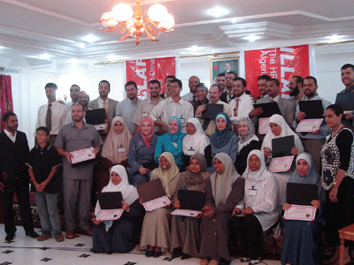 وفي نهاية الدورة استلم المتدربون شهاداتهم من المدرب الدولي المعمار محمد بدرة وكانت السعادة تغمر وجوه الجميع وذلك لما حقوقه وتعلموه في هذه الدورة وفيما يلي بعضاً من صور حفل توزيع الشهادات.