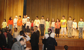 وهذه بعض الصور من حفل الختام لقطات عامة للأطفال أحد الأطفال وهو يحمل درع المعرض مصافحة وتهنئة من المسؤولين تقديراً للأطفال بعض المدربين الحاضرين مع الأطفال