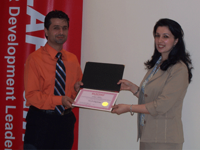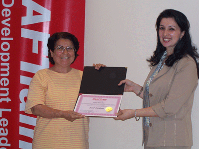 المتدربة هبة حمدان تستلم شهادتها من المدربة