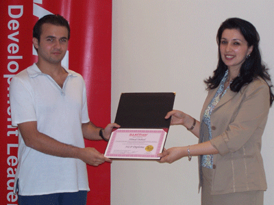 المتدرب عزام سمكري أثناء تسلمه للشهادة.....