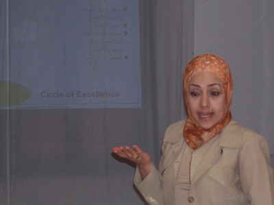 وهاهي المدربةالأستاذة جوليا شريقي من سوريا تنهي دورة جديدة في دبلوم البرمجة اللغوية العصبية التي بدأت يوم الأحد 6/8/2006...