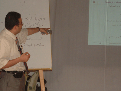 المدرب أثناء شرح معلومات الدورة